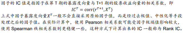 4. 先将因子暴露度向量进行去极值、行业市值中性化,再计算处理后的T期因子暴露度向量和T+1期股票收益向量的Spearman秩相关系数,作为T期因子Rank IC值。