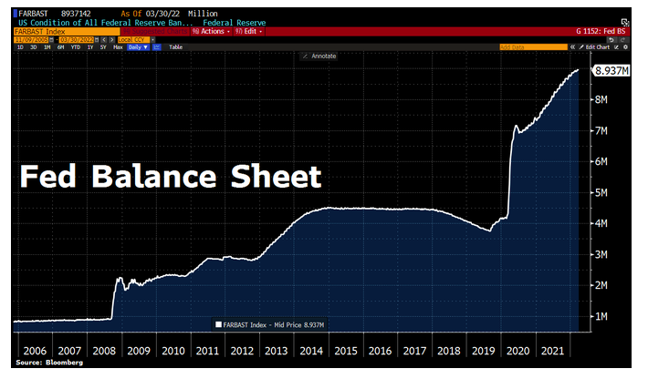 会议纪要显示,美联储未来或将每月缩减最多600亿美元美国公债和350亿美元抵押贷款支持证券(MBS)持有量,并将在三个月或略长时间内逐步达到这一最大缩减规模。这将使投资组合缩减的速度远远快于上一次的缩表周期。预计FOMC将在5月3日至4日的下一次会议上批准缩减资产负债表。