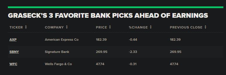 以下是Graseck随着财报季的到来最喜欢的三支银行和消费金融股: