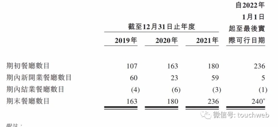 截至2021年末,绿茶餐厅一共有236家,其中,绿茶餐厅在2021年开设了59家新餐厅,关闭了3家餐厅;