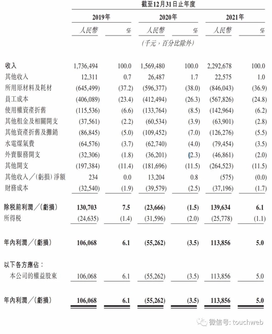 绿茶餐厅2019年、2020年、2021年营收分别为17.36亿元、15.69亿元、22.92亿元;年内利润分别为1.06亿元、-5526万元、1.14亿元。