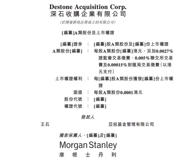 4月8日,港交所网站显示,由万科创始人王石以及亚投资本发起的深石收购企业有限公司向港交所正式递交上市申请。