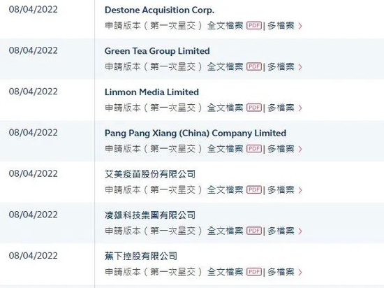 2022年4月8日,港交所网站一天之内就披露8家拟上市企业的招股书。
