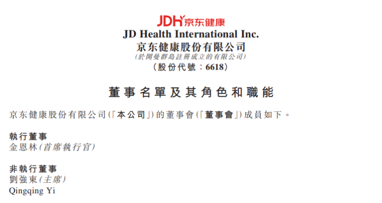 京东健康发布公告宣布董事变更,徐雷已辞任非执行董事、辛利军辞任非执行董事。同时,京东健康董事会宣布,吴鹰先生已获委任为独立非执行董事,自2022年4月7日起生效,另外值得注意的是,提名委员会将由由主席刘强东先生以及成员张博士及吴先生组成。