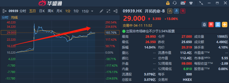 开拓药业今日逆势再涨10%,股价近五日已累涨超170%。招银国际发布最新研究报告称,维持开拓药业-B“买入”评级,目标价由34.37港元上调至48.78港元,较现价再涨68%,看好其新冠口服药普克鲁胺治疗潜力。