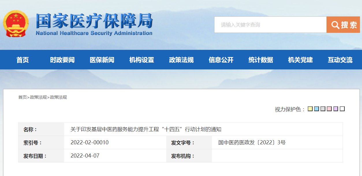 国家医保局官网显示,国家中医药局、国家卫健委、国家药监局等十部门联合印发《基层中医药服务能力提升工程“十四五”行动计划》。计划到2025年,融预防保健、疾病治疗和康复于一体的基层中医药服务网络更加健全,服务设施设备更加完善,人员配备更加合理,管理更加规范,提供覆盖全民和全生命周期的中医药服务