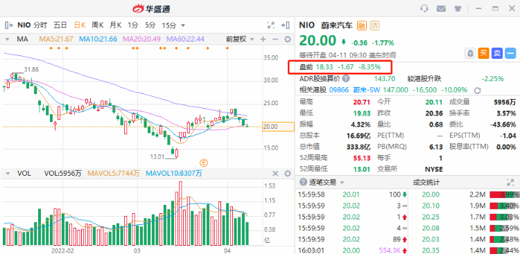 蔚来汽车(NIO)跌超8%,此前表示受疫情影响整车生产已经暂停,并将上调部分车型售价。