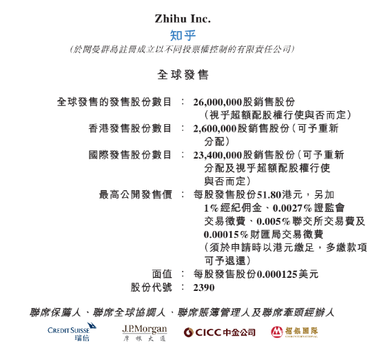 知乎 $ZH 正式启动双重上市,指导价较美股溢价29%