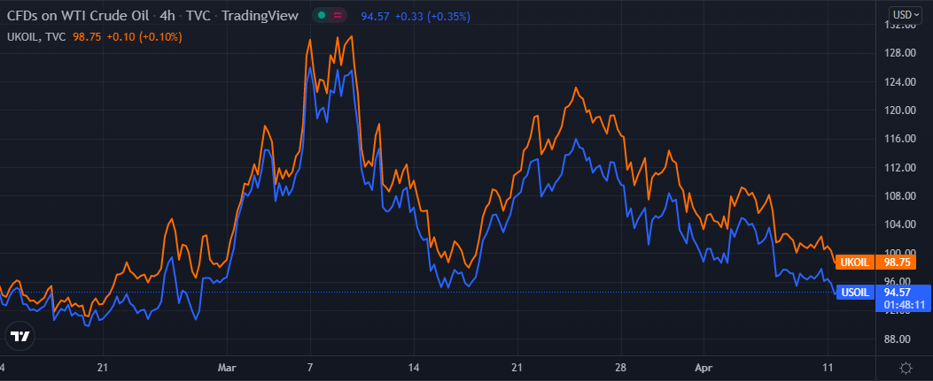 截至发稿,纽约商品交易所5月交货的美国WTI原油期货跌超3.5%,现报每桶94.57美元,创2月25日以来的新低;6月交货的伦敦布伦特原油期货跌近4%,现报每桶98.75美元。