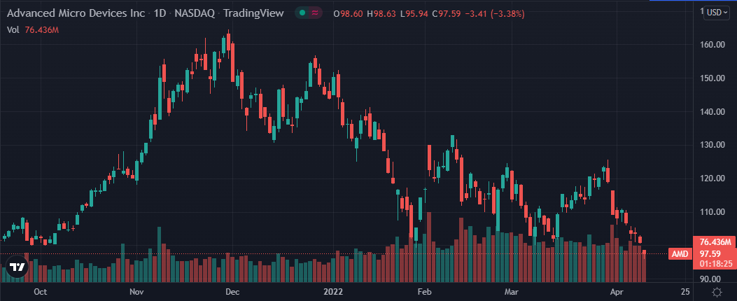 Gerra还指出,加密货币矿商出售硬件等因素也使得显卡价格承压,加剧需求疲软。英伟达的同行AMD也受此影响,截止发稿,AMD股价跌超3%。