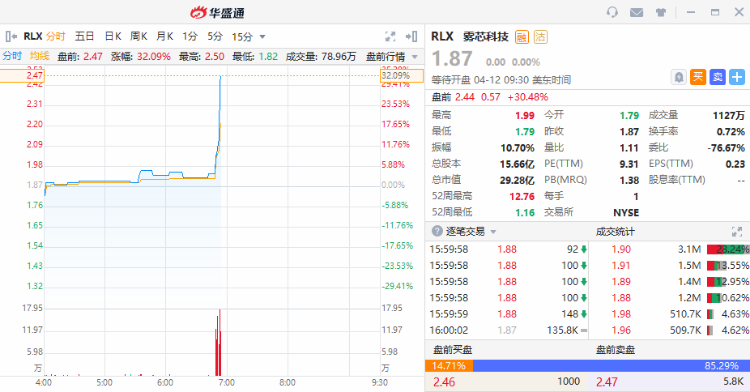 华盛资讯4月12日消息,雾芯科技(RLX)盘前直线拉升,现涨超30%。消息面上,国家市场监督管理总局(国家标准化管理委员会)批准《电子烟》强制性国家标准。
