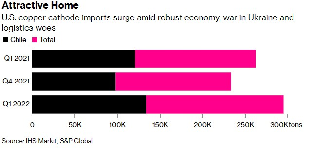 在最近几周,纽约商品交易所(Comex)铜金属价格一直高于伦敦金属交易所(LME)的铜价,吸引了更多的铜金属生产商,尤其是来自全球最大产铜地南美洲的铜金属生产商。从整体价格走势来看,无论是Comex还是LME铜价,今年以来均持续在历史最高位附近徘徊。