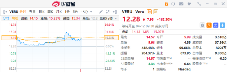 5、Veru盘前一度涨超23%,新冠药降低重症患者死亡率