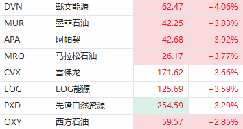 美股盘初石油股走高,戴文能源 $DVN 涨超4%,阿帕契 $APA 、雪佛龙 $CVX 、墨菲石油 $MUR 涨约3%。消息面上,美油、布油涨幅均超5%