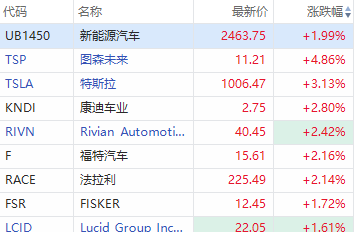 美股新能源车板块多数走高,图森未来 $TSP 涨超4%,特斯拉 $TSLA 涨超3%,Lucid $LCID 、福特等涨超2%。此前Lucid宣布已开始交付Lucid Air Grand Touring。