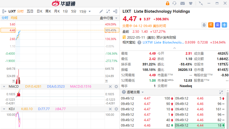 华盛资讯4月12日消息,Lixte $LIXT 生物技术公司盘初涨超300%,暂成交1.66亿美元。消息面上,该公司公布了与荷兰癌症研究所合作的蛋白磷酸酶2A抑制剂LB-100的抗癌活性的临床结果。