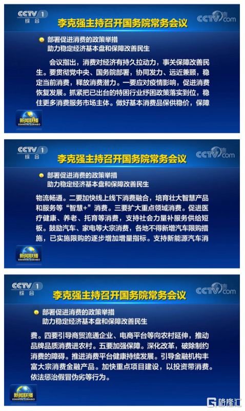 部署促进消费的政策举措。会议提到,助力稳定经济基本盘和保障改善民生。消费对经济有持久拉动力,事关保障改善民生。要贯彻党中央、国务院部署,协同发力、远近兼顾,稳定当前消费,释放消费潜力。应对疫情影响,促进消费恢复发展。抓紧把已出台的特困行业纾困政策落实到位,稳住更多消费服务市场主体。