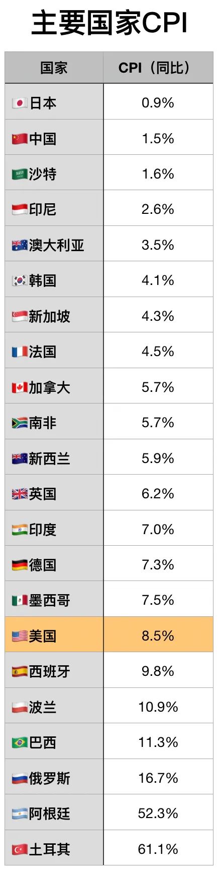 美国目前通胀水平在发达国家里算排名靠前的,不过部分欧洲国家因为能源问题CPI更高。