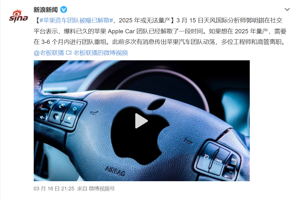 哪怕苹果汽车到现在快 10 年了都没有实际进展,甚至还有造车团队被解散的传闻,但我对小米造车还是有信心的。