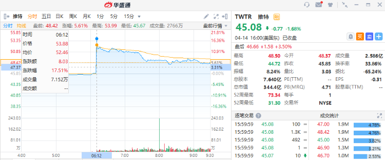 他还认为,马斯克的收购报价有很高的溢价,推特董事会难以拒绝。如果收购被拒绝,推特的股价将会迅速跌去一半。