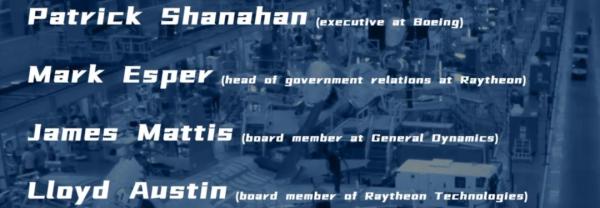 过去五任美国国防部长中,有四位来自五大军火承包商中的一家。