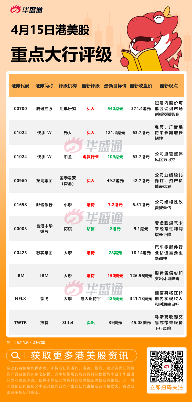 汇丰研究指出虽然业务短期受压,但在近期游戏版号恢复审批或推动广告收入增长,国际游戏业务方面今明两年预期将推约出20款游戏;同时亦看好微信视频号的发展潜力。估计短期内腾讯股价可能会受到市场削减预期的影响,将目标价由550港元降至540港元,维持“买入”评级。