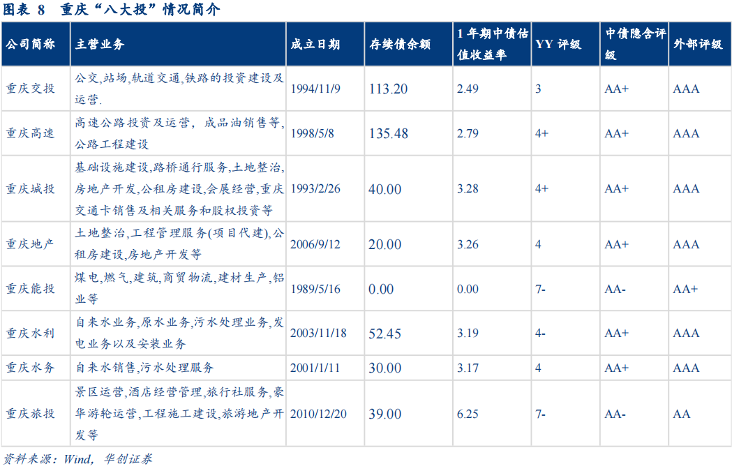 (二)重庆“八大投”债市情况简述