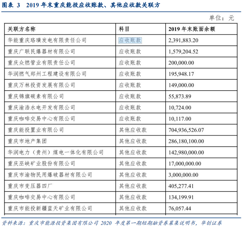 1、从重庆能投的应收账款、其他应收款关联方来看,其并不具备特别典型的隐性债务性质。欠款方不涉及地方政府及其相关单位。所涉及主体主要为当地市场化运作的国企。