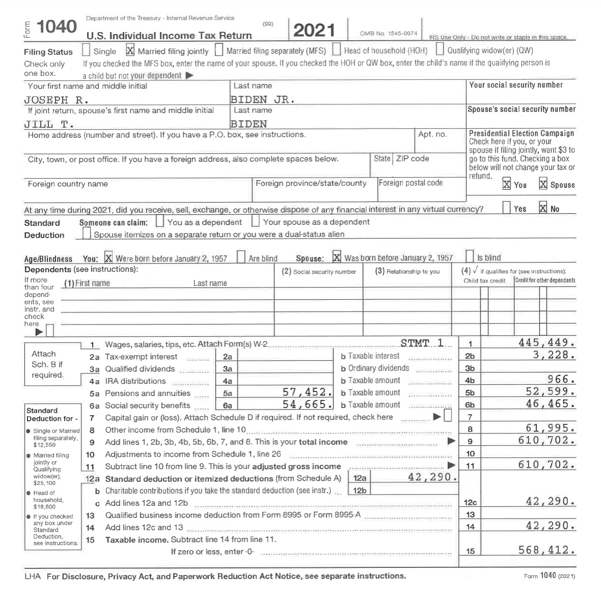 根据这份申报表,拜登夫妇去年缴纳了150439美元的联邦所得税,税率为25%。他们还从第一夫人在北弗吉尼亚社区学院任教的薪水中支付了30765美元的特拉华州所得税和2721美元的弗吉尼亚州所得税。