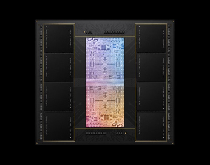 作为参考,初代 M1 芯片仅提供了 8 核 CPU,M1 Pro 为 10 核 CPU,而用“超级胶水”将两颗 M1 Max 拼接到一起的 M1 Ultra 则是 20 核 CPU 。