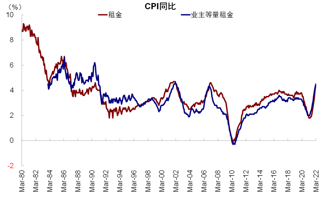 往前看,通胀压力可能体现在服务类价格上,例如出行、房租、医疗保健服务等。3月CPI数据就体现了这一特点,3月核心服务对CPI环比0.3%贡献仅次于能源,其中机票和酒店环比增速最高。实际上,2022年以来核心服务已经连续3个月对CPI贡献超过核心商品。我们预计线下消费和出行价格在旺盛的需求下可能仍有支撑。不过,其整体贡献要明显小于房租和医疗保健服务,住所尤其是业主的等量房租(EOR,权重23.8%)3月环比0.4%与上个月持平。随着近期房价增速的回落,房租不排除也逐渐走弱。此外,疫情的改善也有望推动服务型消费的改善,即服务业就业。近一年多以来休闲酒店一直是非农就业最大贡献之一《海外疫情改善后的服务业修复路径》,这也有助于缓解价格压力。因此,在基准情形下,美国通胀有可能已经接近拐点,但回落速度可能相对偏缓,上行风险依然来自俄乌局势下的油价上冲。
