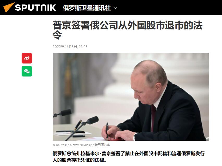 俄罗斯对乌克兰的特别军事行动开始以来,西方国家频频采取措施,冻结或没收俄罗斯机构和公民在海外的资产。此前,一些欧美国家证券交易所已宣布暂停俄上市企业的存托凭证交易。
