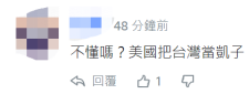 还有网友直言,“不懂吗?美国把台湾当凯子(白痴)”。↓