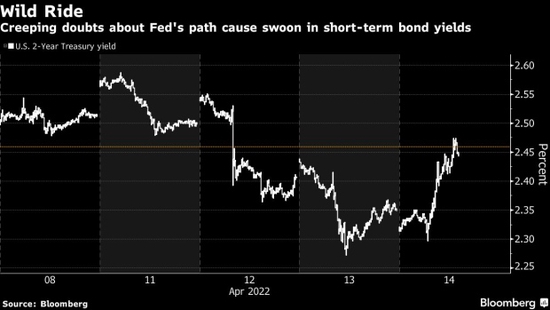 它是如何震荡的:两年期票据的收益率——比长期收益率对美联储政策利率的变化更敏感——从今年 4 月 6 日的 2.60% 的今年峰值跌至周四的 2.27%。在周四大幅反弹后,本周收盘上涨约 2.45%,当时衡量进口价格的涨幅超过经济学家的预期。