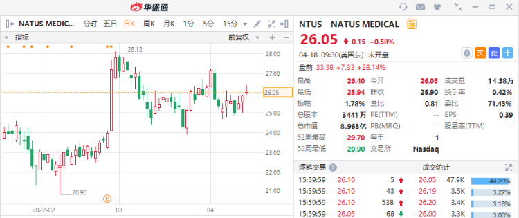 医疗器械公司Natus Medical $NTUS 盘前大涨超28%,据悉将被收购