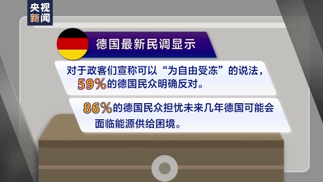 德国最新民调显示,对于政客们宣称民众冬天要降低取暖器温度,所谓“为自由受冻”的说法,59%的德国民众明确反对。此外,86%的德国民众担忧未来几年德国可能会面临能源供给困境。