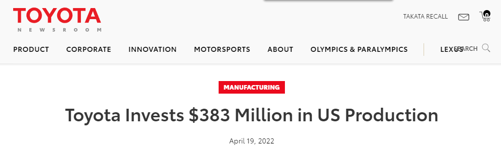 丰田汽车制造与工程业务高级副总裁Norm Bafunno称,“丰田客户想要的是高能效的电气化汽车,这些投资将使我们能够满足客户的需求,并快速响应不断变化的市场。我们致力于在美国投资,我们的团队已经准备好迎接这个新的挑战。”