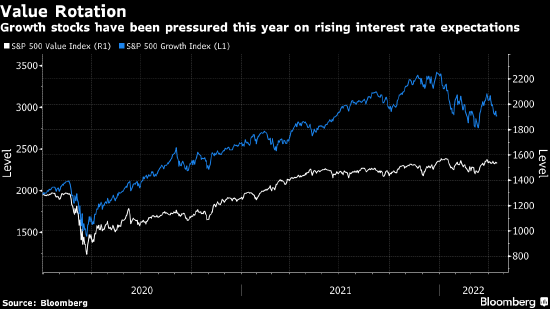 上述策略师在给客户的一份报告中写道:“由于大宗商品超级周期,货币政策分化,以及第一季度高贝塔股和成长型股票(国内和国际)非常大规模的抛售等宏观因素的共同作用,这种情况很少见,目前或许正是。有一些成长股被充分抛售,一些价值股现在也是成长股。”
