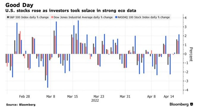 目前,市场担忧的因素并没有发生改变:通胀、俄乌冲突、疫情。但在周二,美国股市却迎来一个多月来的最大单日涨幅,这或许表明投资者的心理因素发生了些许变化。