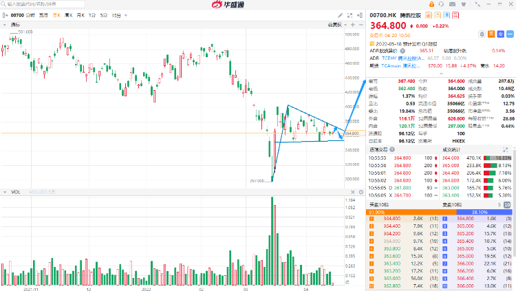 通常来说,上升旗形意味着股价后市进一步向上的概率更大。当然,前提是股价需要向上取得突破。从腾讯的走势来看,380港元一线目前成为关键的阻力位置。后市若能成功取得突破,则有望开启上涨走势。