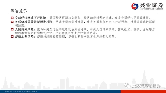 风险提示:全球经济增速下行风险;美联储政策收紧超预期风险;大国博弈风险;疫情反复风险