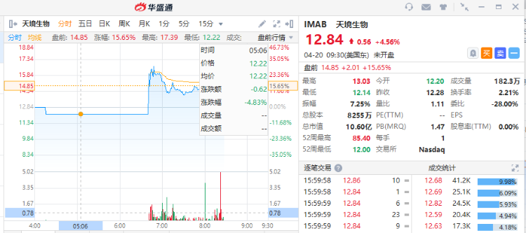 天境生物 $IMAB 盘前一度涨超30%,据悉公司考虑出售在内的选项
