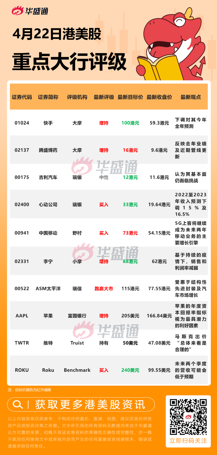 摩根士丹利发表评级报告,维持对快手今年首季预测,惟下调对其今年全年预测。该行表示,由于复苏可见性有限,将公司今年次季总收入预测下调至206亿元人民币(按年升8%、按季持平)、第三季预测则下调至231亿元(按年升13%、按季升12%),两个季度预测均低于市场预期约10%。