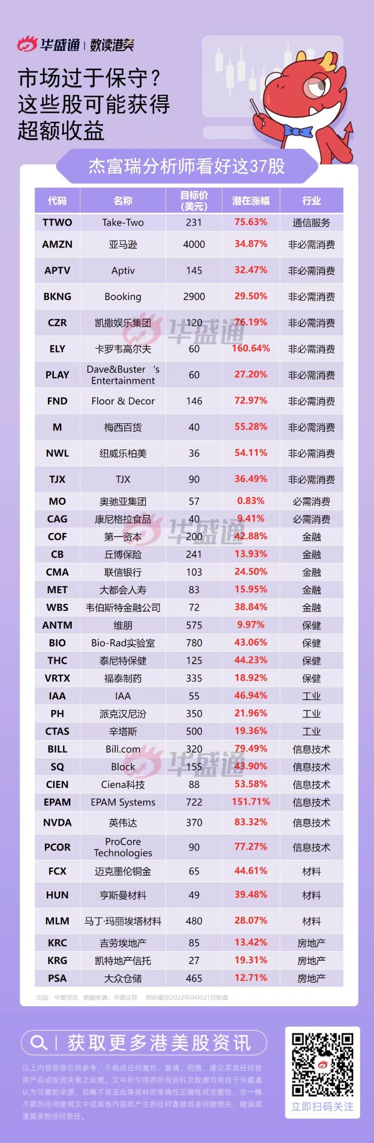 杰富瑞分析师团队以近期经济增长为主题,确定了以下37只投资者在过度保守的市场中可以购买的、表现不错的股票。