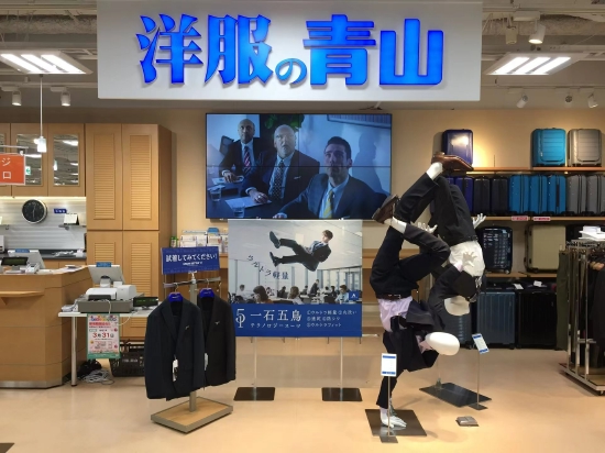 青山洋服今年也将在宣传功能性优秀的商品时,在首都圈和车站前的店铺中活用跑酷人体模型。