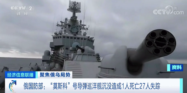 俄罗斯媒体22日报道,俄黑海舰队“莫斯科”号导弹巡洋舰在本月13日起火沉没,已造成1名军人死亡,另有27名船员失踪。