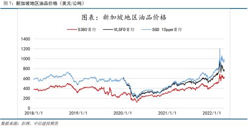 逻辑上,高低硫燃油理论价格区间可从生产工艺方面考虑。高硫燃料油是原油加工中最重质的部分、位于成品油末端,主体是高硫渣油。低硫燃料油有两种主要的生产方式,脱硫工艺的主体是高硫渣油,而调和工艺的主体则转移至柴油、低硫渣油等。目前市场上最常规的是将柴油价格作为超低硫燃料油的定价基准,采用“柴油+升贴水”模式。以新加坡低硫燃料油为例,其定价基准主要参照柴油(10PPm的轻油)。