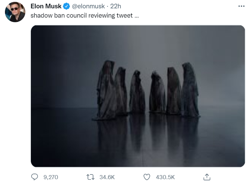 随后他po出了比尔盖茨的大肚照片,并配上文字:万一你需要快速减肥,并表示这条推文会被“限流”。