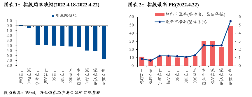 并且,从多项指标看,当前市场悲观预期已很大程度反映在股价中。1)股权风险溢价上,万得全A、上证综指、创业板指股权风险溢价已分别升至2010年以来的72.1%、82.2%和94%分位,均已超过2016年初股灾结束后的水平。2)下跌的幅度和速度上,本轮市场从2021年12月中旬调整至今,上证综指已跌16.1%,超过2021年初的调整,斜率上接近2018年。与此同时,创业板指更大跌34.3%,在跌幅和斜率上都已超过2018年。3)估值层面,全A的PE估值均已逼近2020年3月疫情导致全球市场暴跌时的水平,创业板估值更已低于当时水平。4)市场活跃度上,沪深两市成交额也已回落至8000亿元/日以下,两融余额也从2021年三季度的接近2万亿元回落至1.6万亿元。5)增量资金上,各类金融产品的发行规模大幅下滑,一季度偏股基金新发规模同比缩量82%,4月至今也仅发行111亿元,并且保险、私募等绝对收益机构的增量也有限;资金仓位上,虽然一季度负反馈式的减仓已经缓和,但多数机构的仓位仍在低位徘徊。显示市场情绪已接近冰点。因此,从多项指标来看,市场悲观预期已很大程度反映在股价中。往后看,尽管在新冠疫情、美联储加息缩表、美债利率上行、美股波动、俄乌冲突等内外部不确定性下,短期市场很难直接反转,但后续市场更多将从整体调整转入结构性分化。
