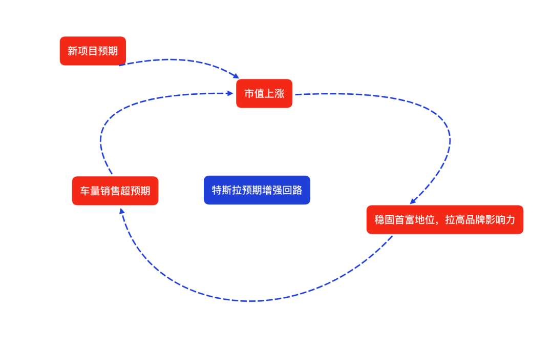 新项目预期--激发市值上涨--稳固首富地位拉高品牌影响力--车辆销售超预期--继续激发市值上涨。